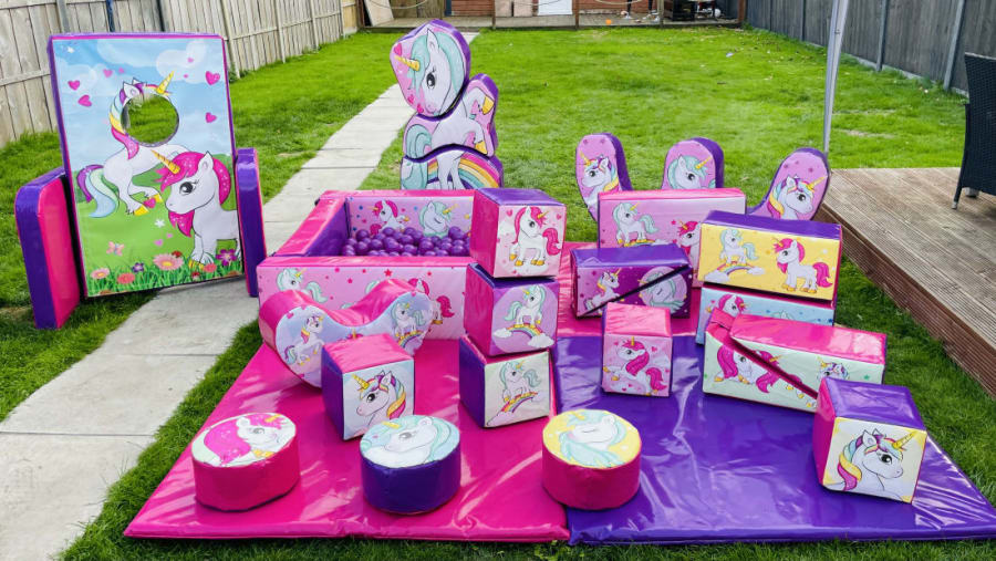 Looking for unicorn party ideas in Kings Lynn and surrounding areas then this package is for you as has items suitable for all ages. The stunning 3D slide bouncy castle is a whopping 16ft by 17ft and comes with a very large range of soft play with a unicorn theme snakes and ladders and tic tak toe and a soft play ball pool supply hours of fun for bouncy and playing games.