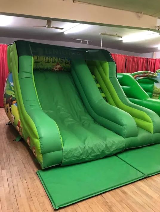 This is a perfect package for up to age 7 jungle fans this 5ft platform slide is perfect for low ceiling height halls also suitable for outdoor hire . The slide has artwork of all there favourite animals on and is just the right size for the little ones to enjoy the slide experience along side the matching jungle air juggler ball pool full of hundreds of balls for extra fun and suitable for all toddlers . You could make your jungle party even more fun by adding the jungle slide bouncy castle and photo back drop giving it the full rumble in the jungle theme. we cover Kings Lynn for any enquiries you can contact one of our team members on 07411910448 or click here to contact our office. Our online booking system is available 24hrs a day 7 days a week .