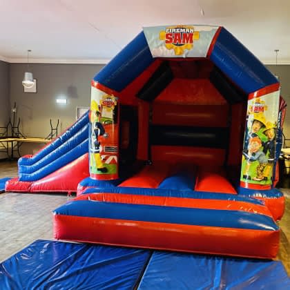Looking for fireman Sam party ideas in Kings Lynn then look no further we have a variety of fireman Sam bouncy castles. This inflatable comes in red and blue high gloss material and vibrant gloss fireman Sam artwork with the added extra of a slide coming off the side and also has a fitted sun and shower canopy. Wanting more than just a bouncy castle take a look on our soft play and ball pool categories or something for your older guests then we have a wide variety of adult suitable inflatables and assault courses so providing fun for everyone. Inflate-A-Bubbles have been in the entertainments industry for over 10 years and our team are only to happy to give you any help or advice making your booking just CLICK HERE to contact our office via email or call one of the events team on 07441910448 and we would be only to happy to help make your party or event one to remember. Bookings can be made online 24 hours a day 7 days a week using our online diary and booking system it really is that easy and stress free when choosing Inflate-A-Bubbles , your No1 choice for inflatable hire in Kings Lynn and Wisbech, Downham Market, Marham, Denver, Swaffam, Tilney, Terrington, Barton Bendish, Wereham, Sutton Bridge, Clenchwarton and all surrounding areas. Cant find your area take a look on our areas covered . We even have FREE PARTY INVITES you can choose and download .