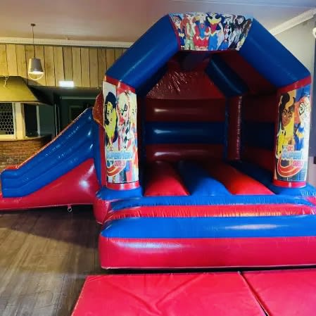 Our brand new DC girls Superhero side slide bouncy castle that's right superheroes are not just for the boys but girls to. This inflatable comes in a high vibrant gloss material with stunning high quality art work. This castle is perfect for most gardens and halls and a mixed age group of children. If you have some little superheroes attending your special day then take a look at our