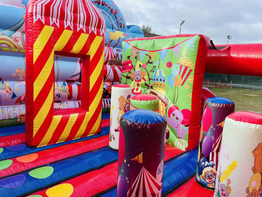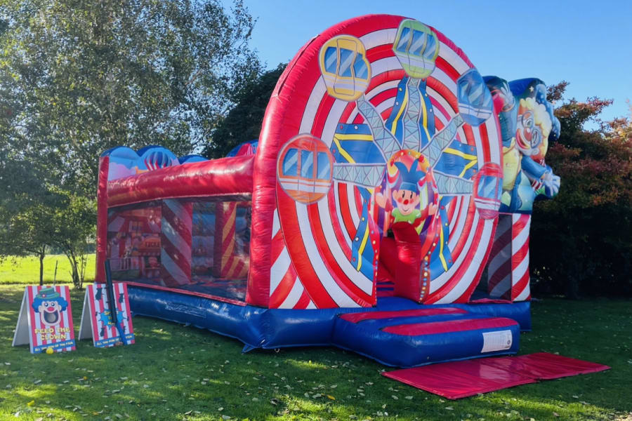 Roll up Roll up its Carnival party time with our stunning Ferris wheel brand new to our fleet and the only one in Norfolk.. This inflatable is an absolute show stopper being nearly 19ft in height and 18ft wide it will certainly impress your guests. Inside it has a slide, bish bash posts, peep hole and the classic twister game not compromising its large bounce area your guests really will have a blast. Wanting more Carnival party ideas ? take a look at our