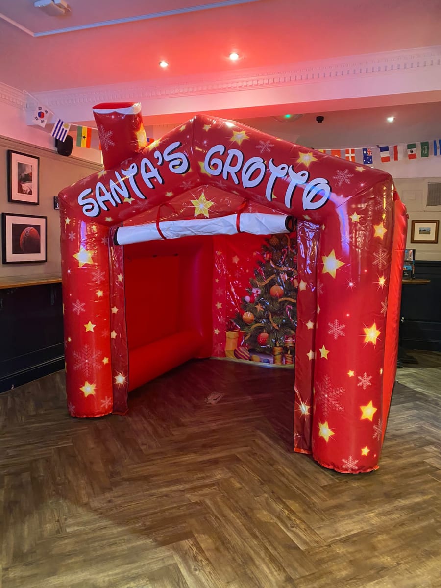 Are you looking for inflatable Christmas grotto hire in and around Kings Lynn ? then look no further than our amazing Santas grotto , made in a high gloss material and with stunning Christmas themed artwork this really bring that magical Christmas feel to any party or event . this Christmas grotto also has more artwork on the inside and even plenty of straps on the ceiling giving you the option to add Christmas decorations and lights for the full effect of your very own magical Santa's grotto. The grotto is suitable for hire indoors with it being low in height but is also suitable for outdoor hires. Wanting more for your Christmas event then take a look at our christmas hire section where we have Christmas hook a duck, bouncy castles, ball pool and photo back drop to capture the memories of your special day. If you are not wanting to be spending time of your event in the kitchen take a look at our hot dog steamer in the fun foods section this makes feeding your party guests very easy and stress free. Here at Inflate A Bubbles we cover Kings Lynn and all surrounding areas if you cant find your area on our areas covered section you can email the office or call on 07411910448 and a member of the team will be happy to help with any enquiries.