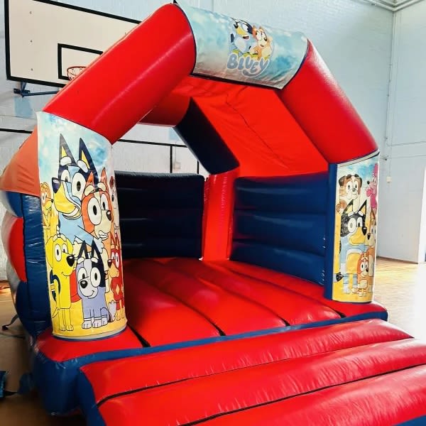 Looking for Bluey party ideas then look no further Bandit, Chilli and Uncle Stripe are here in vibrant high gloss artwork on a red and blue glossy Bouncy Castle with an added weather proof sun and shower cover. Wanting more? take a look at our party extras and games section finding suitable inflatables not just for boys and girls but adults to and even soft play and ball pools for the toddlers. Bookings can be made online with our booking system anytime of the day simply scroll onto the castle you like , check availability and then proceed to book it really is that easy . If you need any help and advice just CLICK HERE to send our office and email or call one of the team on 07411910448. Here at Inflate A Bubbles we not only cover Kings Lynn but also Wisbech, Downham Market, Marham, Denver, Swaffam, Tilney, Terrington, Barton Bendish, Wereham, Sutton Bridge, Clenchwarton and all surrounding areas. Cant find your area take a look on our areas covered . With over 10 years experience in the children's entertainment industry i am sure we can help you make your party one to remember . We even have FREE PARTY INVITES you can choose and download . Inflate-A-Bubbles your No1choice for bouncy castle hire.