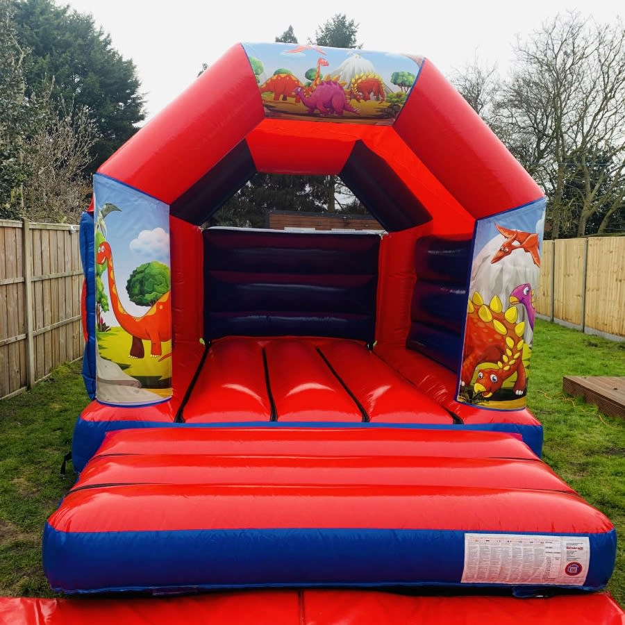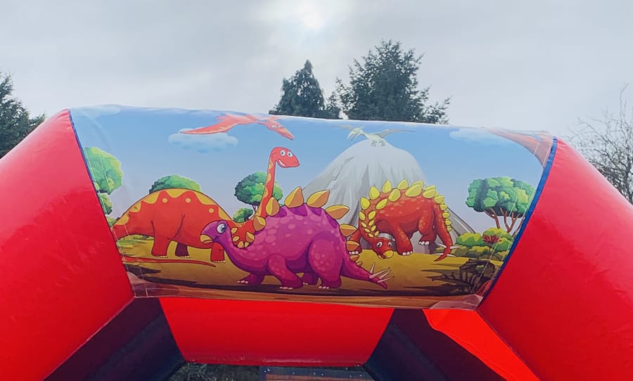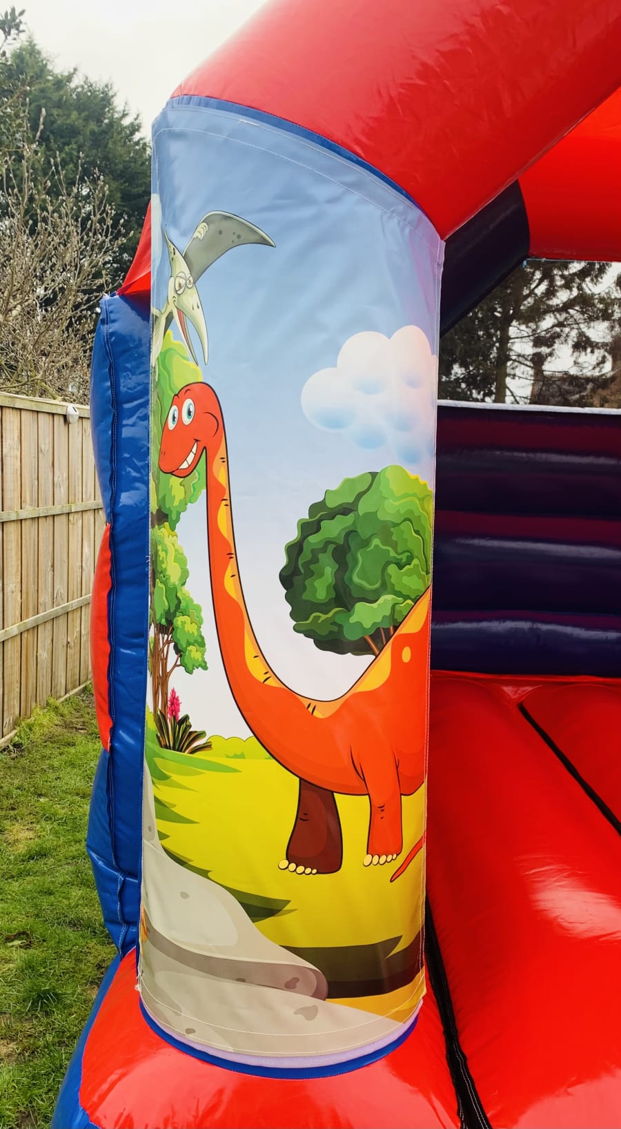 Our brand new for 2021 Dinosaur bouncy castle is a Roarrrrrrring success being one of our most popular themes and is suitable for both boys and girls. This inflatable is made from high gloss material with a built in rain and sun canopy to suit the great British weather including stunning high gloss art work. Wanting more ? take a look at our range of