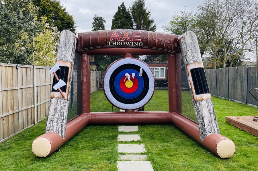 Check out our brand new Axe throwing game for 2021 its a perfect addition to any of our bouncy castles or assault courses. The aim of the game is to hit the bullseye or closest to it to win providing all round run for adults and children. Our garden games have become very popular including our giant inflatable dart board, Basket ball, Penalty shoot out and much more. These items are suitable for indoor and outdoor hire and a great way for interaction at any party, team building days, weddings or events. We cover Kings Lynn and all surrounding areas if you cant find your area on the areas covered section then click here to email our office or call 07411910448 and a member of the team will be happy to help with any enquiries.