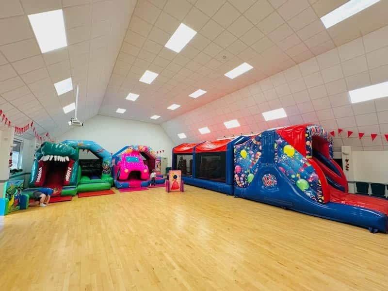 All of our bouncy castles and games fit in this hall alongside some of our assault courses