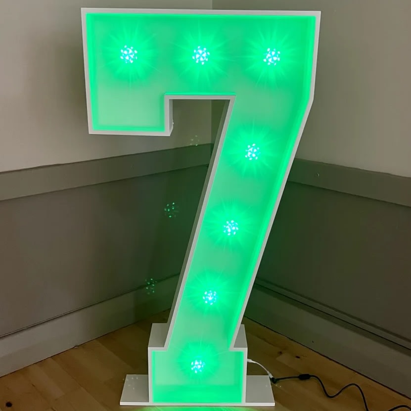 Make your birthday party truly unforgettable with our Light up LED Number 7 ! Standing at 4ft tall, this eye-catching decoration can be customised to shine in multiple colours or stay a single colour, making it the perfect photo prop for your event. Whether you're celebrating with adults or children, this illuminated number will add a touch of magic to your festivities.