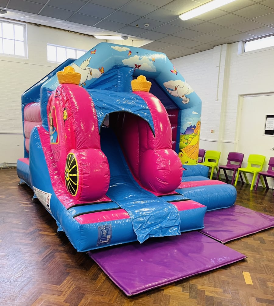 Our amazing brand new for this year 3D Princess Carriage is a real show stopper giving your very own Princess a chance to get to the ball on time with there friends making it a party to remember with this being the only one of its kind in the area. This bouncy castle also has a slide on the front making it perfect for narrow gardens and halls. We also have lots of great money saving deals available in our
