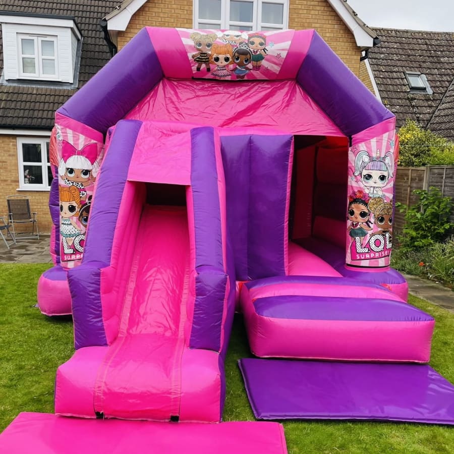 Our brand new LOL front slide combo bouncy castle is brand new for 2021 includes a rain and sun cover with the slide coming from the front of the inflatable making it suitable for narrow gardens. Wanting more than something just for the children then take a look at our adult bouncy castles range and garden games providing fun for all your guests we also do soft play so even the youngest of guests can be involved. We cover Kings Lynn and all surrounding areas you can see our areas covered section to help find your area or click here to email the office or call on 07411910448 and a member of our team will be happy to help with all enquiries.