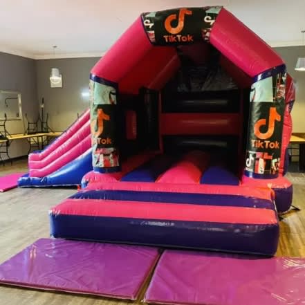 Tik Tok bouncy castle Pink and Purple side slide