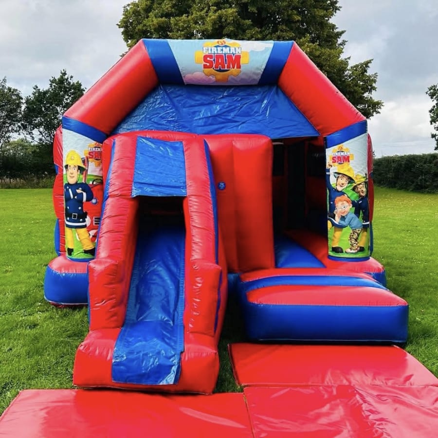 Looking for fireman Sam party ideas in Kings Lynn then look no further we have a variety of fireman Sam bouncy castles. This inflatable comes in red and blue high gloss material and vibrant gloss fireman Sam artwork with the added extra of a slide coming off the front making this more versatile for the more narrow gardens and halls also has a fitted sun and shower canopy. Wanting more than just a bouncy castle take a look on our soft play and ball pool categories or something for your older guests then we have a wide variety of adult suitable inflatables and assault courses so providing fun for everyone. Inflate-A-Bubbles have been in the entertainments industry for over 10 years and our team are only to happy to give you any help or advice making your booking just CLICK HERE to contact our office via email or call one of the events team on 07441910448 and we would be only to happy to help make your party or event one to remember. Bookings can be made online 24 hours a day 7 days a week using our online diary and booking system it really is that easy and stress free when choosing Inflate-A-Bubbles , your No1 choice for inflatable hire in Kings Lynn and Wisbech, Downham Market, Marham, Denver, Swaffam, Tilney, Terrington, Barton Bendish, Wereham, Sutton Bridge, Clenchwarton and all surrounding areas. Cant find your area take a look on our areas covered . We even have FREE PARTY INVITES you can choose and download .