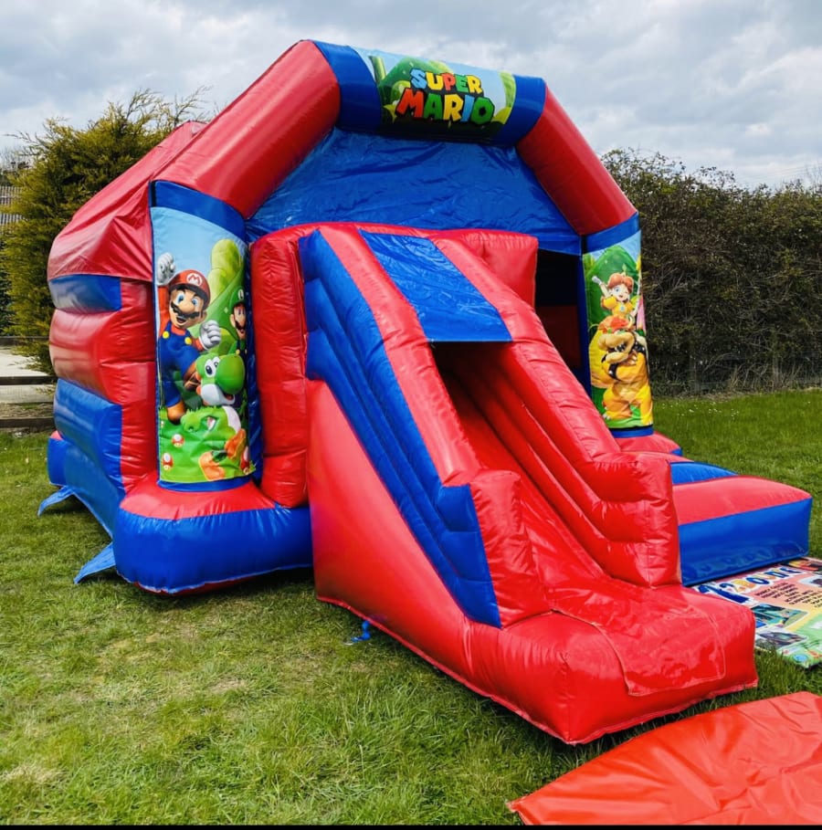 Looking for Super Mario bouncy castle hire ideas in Kings Lynn and surrounding areas then you have come to the right place . This little Italian plumber has been ruling the console games world since 1985 alongside his brother Luigi they travel from castle to castle to conquer the great Bowser to rescue the Princess. This inflatable comes in vibrant high gloss material featuring all your favourite Mario characters in glossy bright art work including a sun and shower canopy with the added extra of a slide coming off the front making it more versatile for narrow gardens and halls. Wanting to make your party or event more special take a look at our party extras and games categories or something for your younger guests we have soft play and ball pools. Wanting your special occasion to go on into the night we offer an overnight option or a money saving multi-day hire. Inflate-A-Bubbles have been in the entertainments industry for over 12 years and our team are only to happy to give you any help or advice making your booking just CLICK HERE to contact our office via email or call one of the events team on 07441910448 and we would be only to happy to help make your party or event one to remember. Bookings can be made online 24 hours a day 7 days a week using our online diary and booking system it really is that easy and stress free when choosing Inflate-A-Bubbles , your No1 choice for inflatable hire in Kings Lynn and Wisbech, Downham Market, Marham, Denver, Swaffam, Tilney, Terrington, Barton Bendish, Wereham, Sutton Bridge, Clenchwarton and all surrounding areas. Cant find your area take a look on our areas covered . We even have FREE PARTY INVITES you can choose and download .