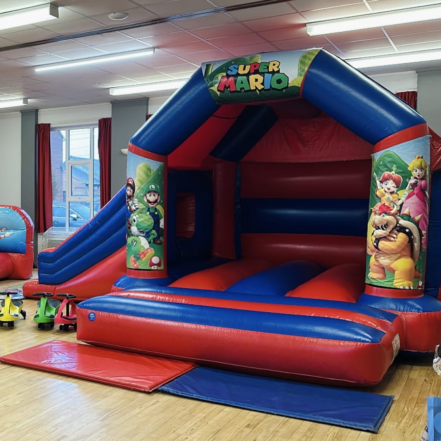Looking for Super Mario bouncy castle hire ideas in Kings Lynn and surrounding areas then you have come to the right place . This little Italian plumber has been ruling the console games world since 1985 alongside his brother Luigi they travel from castle to castle to conquer the great Bowser to rescue the Princess. This inflatable comes in vibrant high gloss material featuring all your favourite Mario characters in glossy bright art work including a sun and shower canopy with the added extra of a slide coming off side making it more versatile for gardens and halls. Wanting to make your party or event more special take a look at our