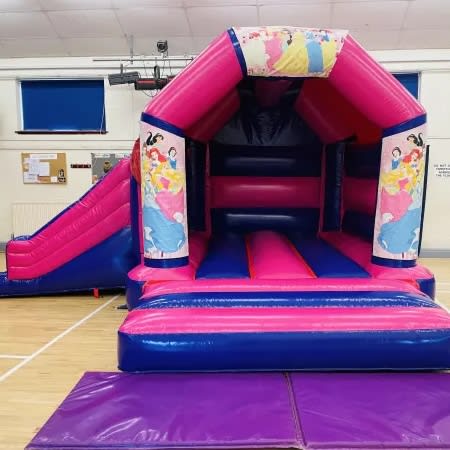 Always a very popular theme with the girls is the princess range and at Inflate-A-Bubbles we have not held back similar to a normal bouncy castle but with the added extra of a slide coming out from the side this princess castle really will make your little girls dreams come true . The front of this inflatable has stunning artwork in beautiful princess like colours and lilac bounce bed that really does set this apart from most bouncy castles , we can also cater for the younger princesses at your event with one of our great