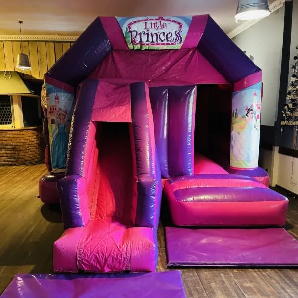 Our fantasty princess bouncy castle comes in bright gloss pink and purple shiny material with the added extra of a slide coming off the front making it more suitable for the more narrow gardens and halls. Wanting to add more to your booking take a look at our