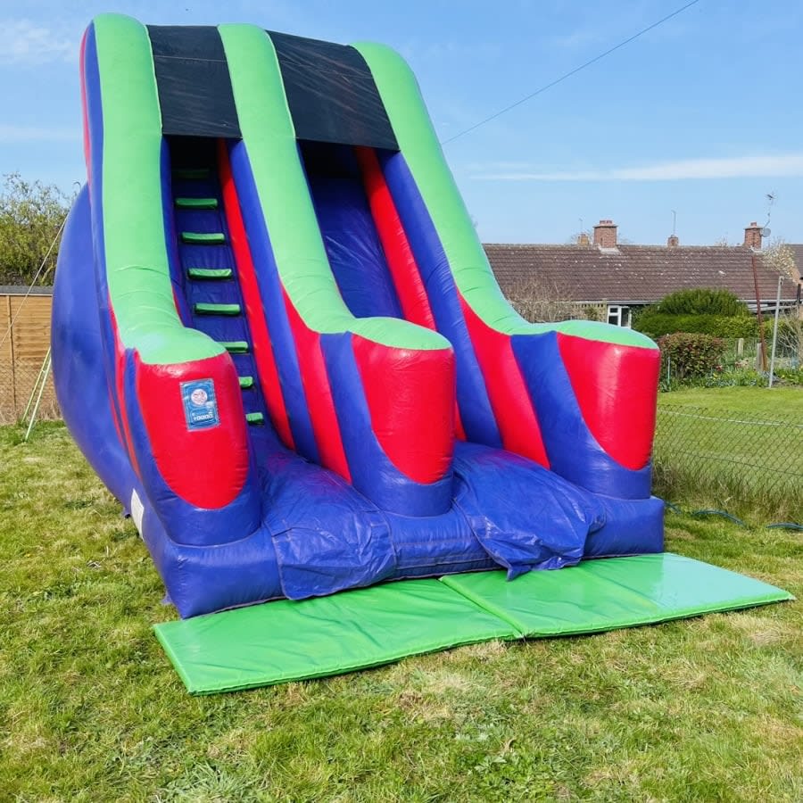 Our show stopping big slide is one of are most popular inflatables with a 10ft platform and stands at a massive 17ft in height with the climb to the top and the rush back down is what the children love the most .
