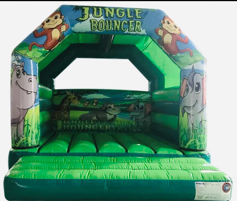 Looking for Jungle party ideas in Kings Lynn then we have an amazing large range of jungle products . This jungle package comes in full matching theme with something for all your party guests both adults and children as the whopping 15 ft by 15ft bouncy castle is suitable for all ages . Along side the jungle bouncy castle comes a 5ft platform matching jungle slide and a jungle air juggler ball pool.