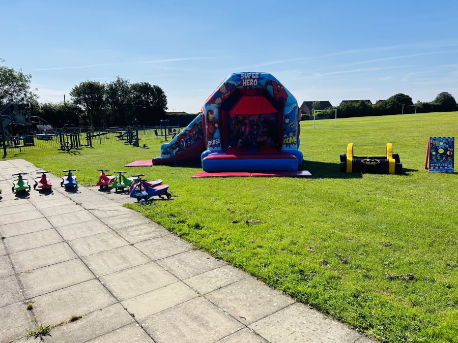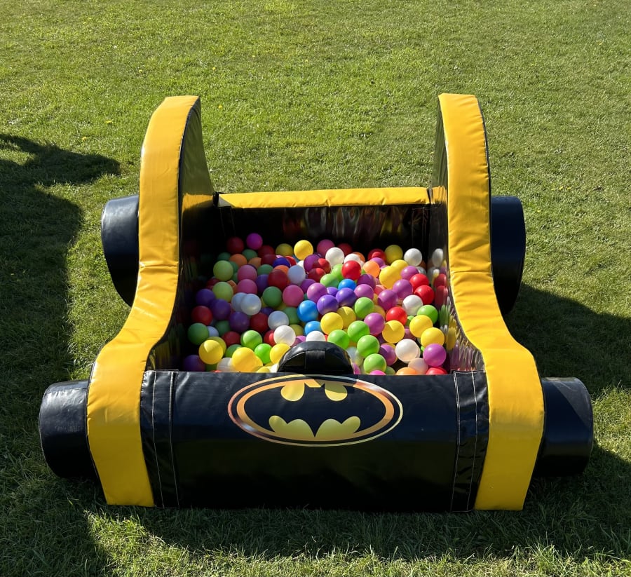 Looking for superhero party ideas then look no further we have built this package to suit all heroes. included in this package is our full themed slide bouncy castle featuring all the favourite characters along side a matching carnival game and 3D bat mobile .