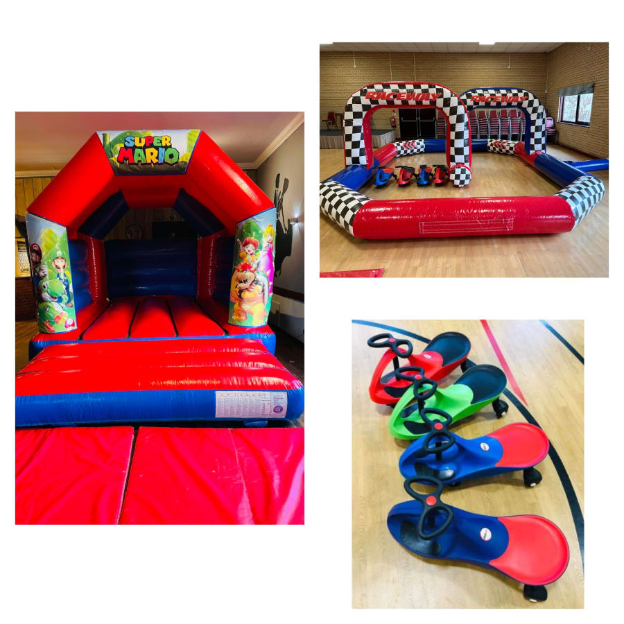 We proudly offer bouncy castle hire in Kingslynn, Wisbech, Hunstanton, Heacham, Dersingham, Sedgeford, Marham, Wereham, Sutton Bridge, Long Sutton, Sutton St James, Downham Market, Fakenham, and the surrounding areas. Our team ensures timely delivery and setup, so you can focus on enjoying the day. Let us bring the fun to your doorstep with our Mario Racing Car Package!