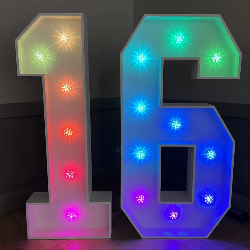 What better way to celebrate this milestone than to having it up there in lights for all to see while making a great photo prop for capturing all your memorable photos on your special day. These 4ft LED light up numbers can be a solid colour, flashing or multicolour so can match up well to any theme.
