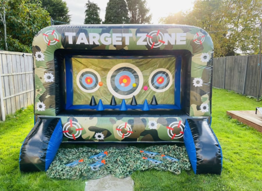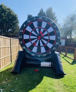 This inflatable games package features 3 of our most popular giant inflatable games to really test your aim and skill while under pressure to score the maximum points to beat your rivals , suitable for both adults and children this really is a great money saving way of entertaining your guests at any event . 1st up is the brand new nerf shootout grab your gun and load up your foam nerf bullet all of which is supplied then take aim and fire at one of the six floating balls from the air blaster , sounds simple but how good really is your aim ? Then switch onto the ever popular penalty shootout grab one of our foam footballs we supply place on the penalty spot then run up and shoot aiming at one of the 4 targets each with a different level of skill and points to match can you be the winner and hit the back of the net ?Last up in this games package is the giant inflatable darts game , take your 3 coloured velcro darts stand back to the line the with a steady hand take aim and throw highest score with all three darts is the winner . This package is great for lots of different events such as weddings , team building days , school rewards days and even the good old English garden party . Inflate-A-Bubbles have many other fantastic packages available on offer please see our packages page for more fantastic money saving deals on some amazing bundles we have put together . We have been in the entertainment and events business for over 10 years and understand what hire products work best at different events , if your unsure or would like some advice just CLICK HERE to email our office or call one of the events team on 07411910448 and we would be only to happy to help . Bookings can be made online 24 hours a day using our user friendly availability checker and booking system it really is that easy to make your party or event a sure fire hit with your guests