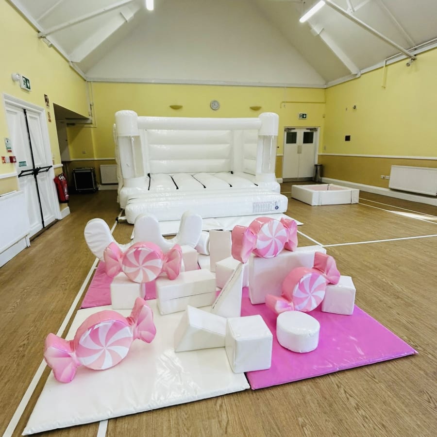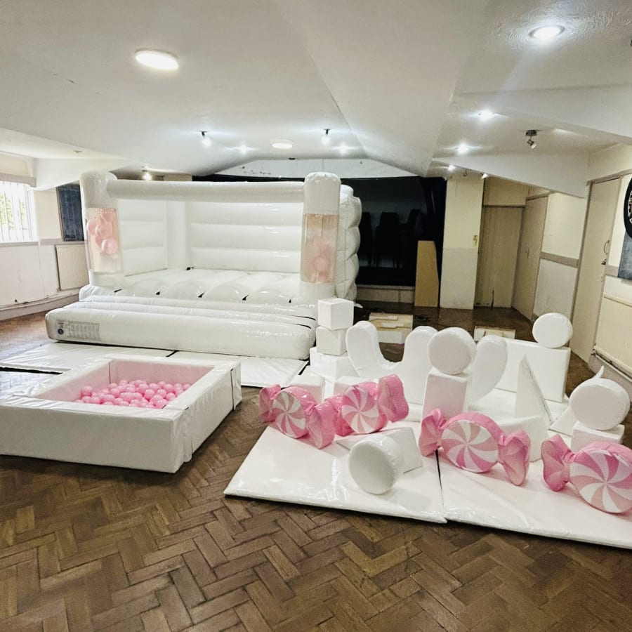 White Bouncy Castle Soft Play Luxury Pink Candy Package