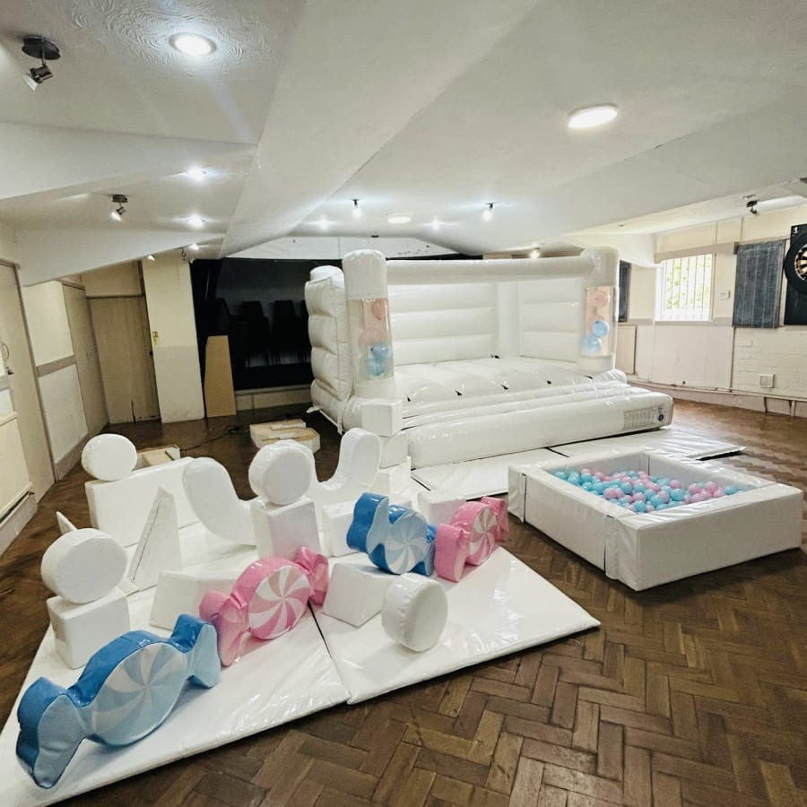 White Bouncy Castle Soft Play Luxury Pink and Blue Candy Package
